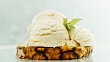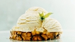 Slice pineapple with ice cream on decorated with fresh mint on top