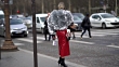 PARIS, FRANCE - MARCH 06: Sofie Valkiers wears a silver oversized coat, a red leather skirt, a Chanel bag , outside Chanel, during Paris Fashion Week Womenswear Fall/Winter 2018/2019, on March 6, 2018 in Paris, France. (Footage by Edward Berthelot/Getty Images)