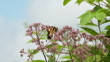 Swallowtail Butterfly Feeding on Pink Flowers Against Blue Sky - Vídeo de stock 4K