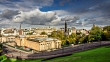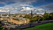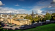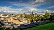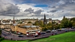 Traffic pours around the Scottish National Gallery and the Royal Scottish Gallery and up The Mound, as seen from further up the hill.