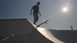 young male at the skatepark dropping in on a halfpipe