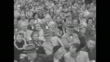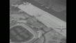 Title "Bradley Field, Conn. - Dedicate New Terminal Building" superimposed over aerial airport / terminal building, people in front behind railing with bunting, can see parking deck beneath / looking up at terminal with dedication ceremony and people on observation deck, flags flying / CU Bradley Field on building; pan down to seated audience / MS Senator William Benton, Governor John Davis Lodge, and editor and publisher of the Hartford Times Frank Murphy seated together, others nearby / CU Lodge and Murphy, others behind / CU dignitaries probably including Lt Governor Edward Allen, officers behind, others in bg / audience, women in front row wear furs / guests / side view Murphy speaking at podium, dignitaries behind, photographer to side / CU Murphy speaking / audience applauding / various shots people in line to tour Pan Am plane / various shots aerial airport and terminal