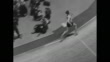 Title superimposed on a running track, "Thrilling Finishes Feature AAU Championships" / Men start the 60 yard dash; John Haines wins / Members of the audience / Haines broadly smiling / Runners on the 600 yard with winner Mal Whitfield; audience / 1000 yard run; Heinz Ulzheimer wins / Paramount cameraman