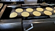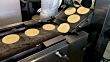 We see a tortilleria working, this is how corn tortillas are made in Mexico, this is the automatic machine that delivers the flatbread tortilla in the round and flat way perfect dimension in order to cook it, this is before cooking it.