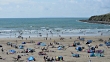 Tourists relaxing on Saunton Sands beach in Devon, U.K.