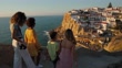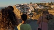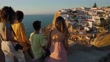 Turistas bajando las escaleras en Azenhas do Mar - Vídeo de stock 4K