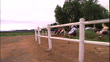 Track left following jockeys riding ostriches in race, Oudtshoorn, South Africa Available in HD. - Vídeo de stock HD