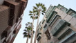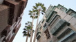Alleyway with tall palm trees and large historic family homes in port city of Jeddah, Saudi Arabia.