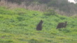 Two Swamp Wallabies (wallabia bicolor) fighting on a hillside at dusk on Phillip Island in Victoria, Australia.