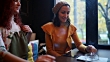 Dos mujeres jóvenes, fumar y divertirse en el café - Vídeo de stock HD