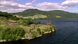 Urquhart Castle (listen;) sits beside Loch Ness in the Highlands of Scotland. The castle is on the A82 road, south-west of Inverness and east of the village of Drumnadrochit. The present ruins date from the 13th to the 16th centuries, though built on the site of an early medieval fortification (...)