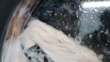 A washing machine that is spinning a large amount of laundry in the drum is spinning slowly.