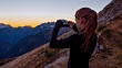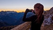 Young woman taking pictures with her phone. Capturing the beautiful view from the top of a mountain.