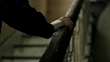 Woman walks up old staircase grabbing handrail. - Vídeo de stock HD