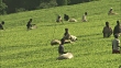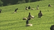 Workers pick tea leaves at a tea plantation. - Vídeo de stock HD