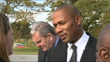 World's first black professional footballer Arthur Wharton honoured with statue / equality in football; ENGLAND: Staffordshire: Burton-on-Trent: St George's Park:EXTDavid Sheepshanks (Chairman, FA National Football Centre) cutting ribbon at ceremony to celebrate the erection of a statue to honour Arthur Wharton, the world's first black professional footballerStatue of Arthur WhartonPlaque giving details of the life of Arthur WhartonDetail of statueEngland Under-17 team Assistant Manager Chris Ramsey talking with anotherLes Ferdinand (QPR Head of Football Operations) talking with womanLes Ferdinand (QPR Head of Football Operations) interview SOT- (Talks of the need to do more to appoint black football managersPeople attending unveiling of statue ceremonyFormer footballer Brendon Batson and others attending ceremonyFerdinand talking with woman as former football manager Chris Hughton alongHughton talking with another