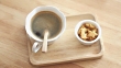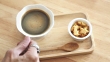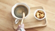 Joven mano agitar taza de café por la mañana en el restaurante Cafe - Vídeo de stock HD
